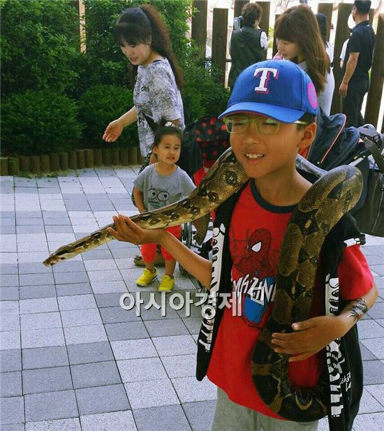 [아시아경제 노해섭기자 ]지난 4월20일 영구 개장한 순천만정원 내 ‘야생동물원’이 어린이를 비롯한 관람객들로부터 선풍적인 인기를 얻고 있다.‘야생동물원’에는 보아뱀을 비롯한 앵무새, 너구리, 알다브라 육지거북이, 고슴도치 및 물새놀이터 및 습지에서 노니는 고니, 원앙, 오리, 기러기, 황학 등 다양한 야생동물을 관찰할 수 있다.시는 '야생동물원‘이 이렇게 선풍적인 인기를 끌고 있는 이유를 가족단위 관람객 증가와 야생동물과 교감하는 이벤트가 주효했다고 밝혔다.시는 어린이, 청소년 등 가족이 함께하는 야생동물 체험행사 인기가 급상승하자 휴일에는 11시, 14시, 16시 3차례에 걸쳐, 평일에는 14시에 체험행사를 정례화 하고 유치원, 어린이, 청소년 등 단체관람객 방문 시 특별이벤트도 준비하고 있다.더불어 다음 달에는 어린이들에게 인기가 많은 ‘물범’이 순천만정원에 들어온다. 시 관계자는 "아이들이 ‘무섭게만 느껴졌던 보아뱀을 만졌어요!’, ‘말하는 앵무새와 놀면서 사진 찍었어요’라며 환성을 지르는 모습에서 자연의 가치를 느낀다"며 "앞으로도 직접 만지고 경험하는 다양한 프로그램을 준비하겠다"고 말했다. 노해섭 기자 nogary@<ⓒ세계를 보는 창 경제를 보는 눈, 아시아경제(www.asiae.co.kr) 무단전재 배포금지>