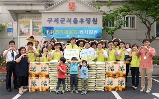 ▲농협은행 봉사단 'NH행복채움회'는 28일 서울 서대문구 천연동에 위치한 아동양육시설인 '구세군서울후생원' 방문해 쌀과 생활용품을 전달하고 후생원 구석구석을 청소하는 등 봉사활동을 펼쳤다.