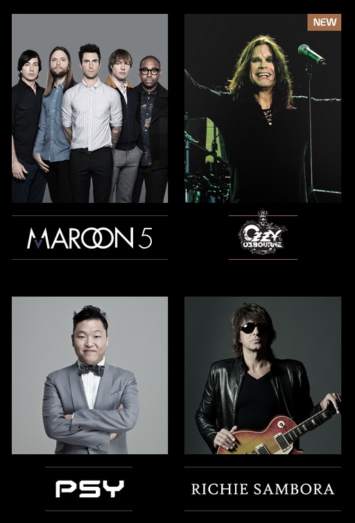 ▲마룬파이브, 오지 오스본, 싸이, 리치 샘보라가 '현대카드 시티브레이크 2014'의 헤드라이너에 이름을 올렸다. (사진: '현대카드 시티브레이크 2014' 홈페이지 캡처)