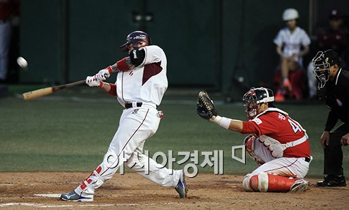 [아시아경제 김현민 기자] 29일 서울 목동구장에서 열린 프로야구 SK 와이번스와 넥센 히어로즈의 경기. 2회말 2사 1,3루에서 넥센 박병호가 좌익수 뜬공을 치고 있다.김현민 사진기자 kimhyun81@asiae.co.kr<ⓒ세계를 보는 창 경제를 보는 눈, 아시아경제(www.asiae.co.kr) 무단전재 배포금지>