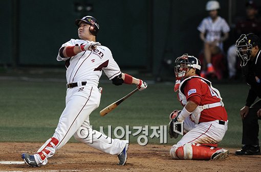 [아시아경제 김현민 기자] 29일 서울 목동구장에서 열린 프로야구 SK 와이번스와 넥센 히어로즈의 경기. 2회말 2사 1,3루에서 넥센 박병호가 좌익수 뜬공을 치고 있다.김현민 사진기자 kimhyun81@asiae.co.kr<ⓒ세계를 보는 창 경제를 보는 눈, 아시아경제(www.asiae.co.kr) 무단전재 배포금지>