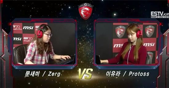 ▲2014 MSI WSL 시즌1 4강 2경기에서 문새미(Z)와 이유라(P)가 대결을 펼쳤다. 이유라가 문새미에게 0-3 몰수패를 당했다. (사진: ESTV 중계화면 캡처)
