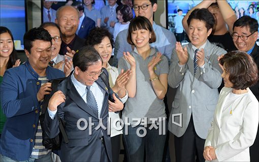 [아시아경제 윤동주 기자] 박원순 서울시장 당선자가 5일 서울 종로구 선거캠프에서 지지자들에게 가방을 선물 받고 있다.윤동주 기자 doso7@asiae.co.kr<ⓒ세계를 보는 창 경제를 보는 눈, 아시아경제(www.asiae.co.kr) 무단전재 배포금지>