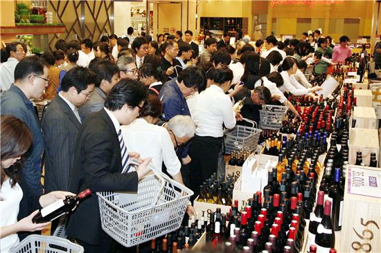 이마트에 따르면 국내 주류시장에서 위스키 시장은 2010년 5645억원에서 2012년 4800억원 수준으로 감소한 반면, 와인 시장은 4250억원에서 4900억으로 성장했으며 지난해 기준으로는 5000억원이 넘었다.늘어나는 와인 소비에 발맞춰 AK플라자 분당점은 8일까지 '월드 와인 투어'를 연다. 분당점은 행사 기간 동안 3만병 규모의 세계 유명 브랜드 와인을 최대 75% 할인된 가격에 판매한다.AK플라자는 이번 행사를 통해 이태리 와인 명장 '로마노 달 포르노(Dal forno Romano)'의 30주년 기념 특별 한정판 와인세트를 선보이는 등 이벤트를 연다. 이 와인세트의 가격은 1200만원으로 120세트만 생산해 전 세계에 배정 수입됐으며 국내에는 5세트가 배정돼 이 중 마지막 남은 1세트를 200만원 할인해 판매하는 것이다.이 밖에 샤또 라뚜르 2007(2병 한정) 90만원, 샤또 빠비 2007(12병 한정) 34만원, 샤또 세르땅 드메 2007(1병 한정) 20만원 등 프랑스 고급 와인을 65~40% 할인하고, 애경그룹 창립 60주년 로고가 박힌 기념 와인 60병을 3만원대에 판매한다.신세계백화점도 8일까지 전점에서 '와인 시즌 결산전'을 열고 상반기 백화점 와인샵에서 인기가 높았던 와인들을 30~80% 할인된 가격에 판매한다. 현대백화점은 이달 10일까지 '와인페어'를 열고, 유명 화이트와인과 스파클링 와인을 30~50% 할인해 판다. 이번 '와인페어'에서 판매하는 물량은 유럽ㆍ남미 등 유명 와인 산지의 인기 와인 35만병, 100억원 규모다.대표상품으로는 볼렝저 로제(13만5000원), 로버트몬다비 오크빌 퓌메블랑(7만5000원), 클로몽블랑 프로젝트 꽈트로 까바 브륏(2만원) 등으로 비교적 고가에서 중저가 와인까지 다양한 가격대의 와인을 판매한다. 또 월드컵을 겨냥해 남미의 대표 와인인 알타이르 08(11만원), 몬테스 알파 피노누아(4만원), 코디렐라 쉬라(3만원) 등 대표적인 남미 와인 10여종을 최대 50% 할인 판매한다. 이마트는 지난달 말 고급 와인의 대명사인 프랑스 이기갈 와인너리 오너가문의 한국 방문 시기에 맞춰 이기갈과 함께 새로운 국민 와인 출시를 검토하겠다고 밝혔다. 이에 앞서 이마트는 지난달 25일 브라질 월드컵을 기념 와인인 '디아블로'를 출시해 40% 이상 할인한 1만9900원에 팔고 있다.홈플러스 역시 이달 시작한 평생교육스쿨 여름학기에 파이니스트(Finest) 와인을 통해 다양한 와인 및 와인 종류에 따라 어울리는 요리를 함께 배우는 '파이니스트 와인, 파이니스트 푸드 특강'을 마련했다.김민진 기자 enter@asiae.co.kr<ⓒ세계를 보는 창 경제를 보는 눈, 아시아경제(www.asiae.co.kr) 무단전재 배포금지>