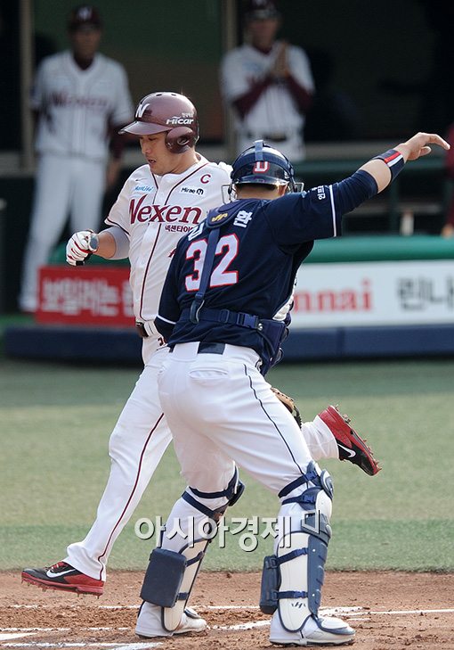 [아시아경제 김현민 기자]7일 서울 목동구장에서 열린 프로야구 두산 베어스와 넥센 히어로즈의 경기. 1회말 1사 1루에서 넥센 유한준의 동점 1타점 2루타 때 1루주자 이택근이 득점에 성공하고 있다. 이택근이 이 득점으로 통산 600득점을 달성했다.김현민 사진기자 kimhyun81@asiae.co.kr<ⓒ세계를 보는 창 경제를 보는 눈, 아시아경제(www.asiae.co.kr) 무단전재 배포금지>