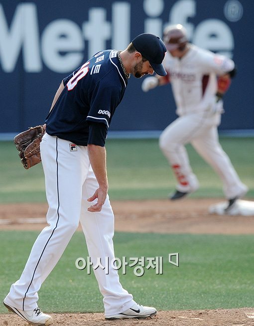 [아시아경제 김현민 기자]7일 서울 목동구장에서 열린 프로야구 두산 베어스와 넥센 히어로즈의 경기, 두산 선발 니퍼트가 3회말 1사 2,3루에서 넥센 박병호에게 역전 3점 홈런을 허용했다.김현민 사진기자 kimhyun81@asiae.co.kr<ⓒ세계를 보는 창 경제를 보는 눈, 아시아경제(www.asiae.co.kr) 무단전재 배포금지>