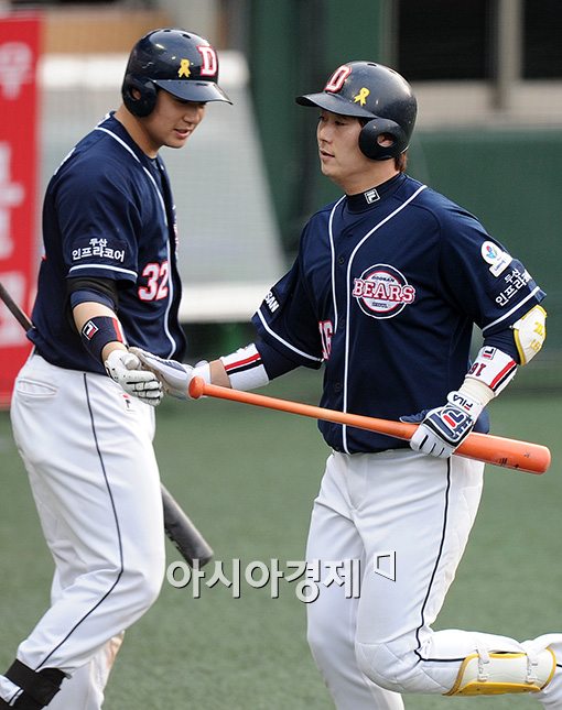[아시아경제 김현민 기자]7일 서울 목동구장에서 열린 프로야구 두산 베어스와 넥센 히어로즈의 경기, 6회초 1사에서 두산 이원석이 넥센 선발 밴헤켄을 상대로 좌중월 솔로홈런을 치고 대기타석의 김재환과 하이파이브하고 있다.김현민 사진기자 kimhyun81@asiae.co.kr<ⓒ세계를 보는 창 경제를 보는 눈, 아시아경제(www.asiae.co.kr) 무단전재 배포금지>