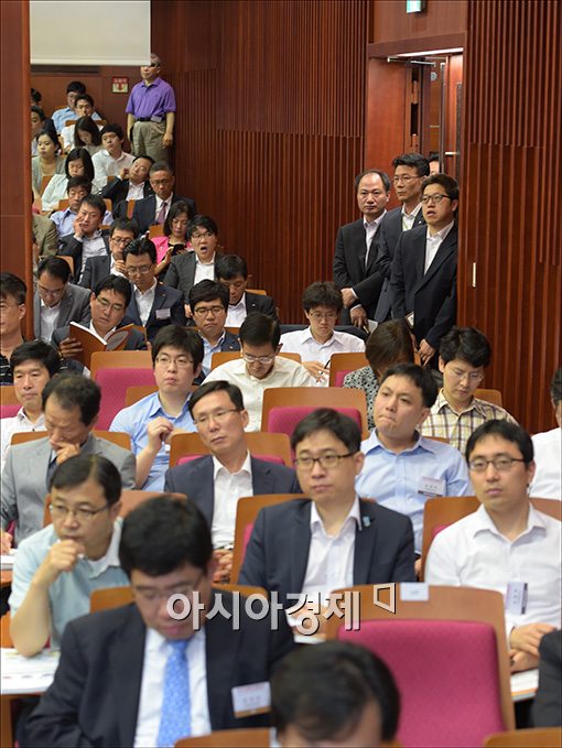 [아시아경제 윤동주 기자] 아시아경제신문과 아시아경제 팍스TV 주최로 10일 서울 여의도 금융투자협회에서 열린 '제1회 글로벌자산배분포럼'에 많은 참석자가 몰려 일부 참석자들은 입구와 복도에 서서 강연을 듣고 있다.윤동주 기자 doso7@asiae.co.kr<ⓒ세계를 보는 창 경제를 보는 눈, 아시아경제(www.asiae.co.kr) 무단전재 배포금지>