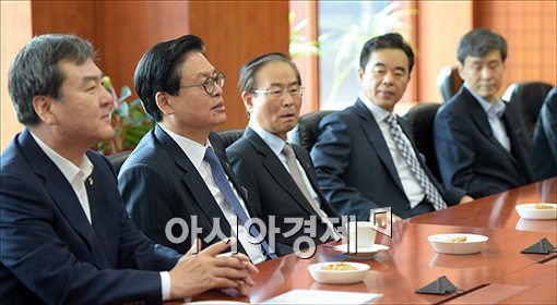 [아시아경제 윤동주 기자] 아시아경제신문과 아시아경제 팍스TV 주최로 10일 서울 여의도 금융투자협회에서 열린 '제1회 글로벌자산배분포럼'에 참석한 정우택 의원과 신제윤 금융위원장등 주요 참석자들이 포럼 시작에 앞서 의견을 나누고 있다.윤동주 기자 doso7@asiae.co.kr<ⓒ세계를 보는 창 경제를 보는 눈, 아시아경제(www.asiae.co.kr) 무단전재 배포금지>