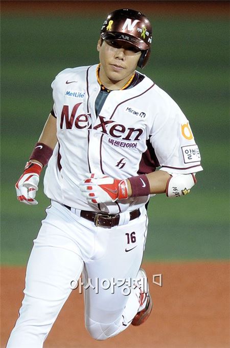 [아시아경제 나석윤 기자]프로야구 넥센의 강정호(27)가 시즌 열여덟 번째 홈런을 때렸다. 지난 6일 두산과의 목동 홈경기에서 3홈런을 몰아친 뒤 세 경기 만에 홈런 행진을 재개했다. 10일 목동구장에서 열린 2014 한국야쿠르트 세븐 프로야구 삼성과의 홈경기에 5번 타자겸 유격수로 선발 출장, 팀이 4-5로 뒤진 8회말 네 번째 타석에서 좌중간 담장을 넘어가는 동점 솔로홈런을 쳤다. 볼카운트 2-1에서 삼성 세 번째 투수 안지만(31)의 4구째를 잡아당겨 타구를 담장 밖으로 보냈다. 비거리는 120m.강정호의 이 홈런으로 넥센은 5-5 동점을 만들며 승부를 원점으로 돌렸다. 나석윤 기자 seokyun1986@asiae.co.kr<ⓒ세계를 보는 창 경제를 보는 눈, 아시아경제(www.asiae.co.kr) 무단전재 배포금지>