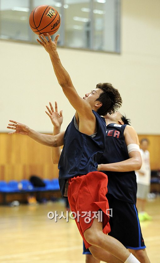 [진천=아시아경제 김현민 기자] 2014 인천아시안게임 개막을 101일 앞둔 10일 충북 진천선수촌 체육관에서 열린 농구대표팀 훈련에서 박찬희(왼쪽)가 이종현의 수비를 뚫고 돌파를 시도하고 있다.김현민 사진기자 kimhyun81@asiae.co.kr<ⓒ세계를 보는 창 경제를 보는 눈, 아시아경제(www.asiae.co.kr) 무단전재 배포금지>