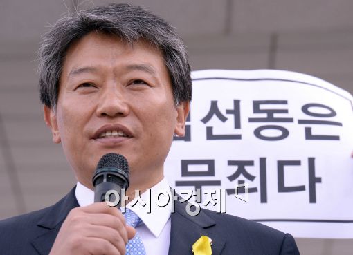 [아시아경제 최우창 기자]국회에서 최루탄을 투척한 혐의로 기소된 통합진보당 김선동 의원이 징역 1년에 집행유예 2년을 선고 받은 12일 오후 서울 서초구 대법원 앞에서 기자회견을 하고 있다.최우창 기자 smicer@asiae.co.kr<ⓒ세계를 보는 창 경제를 보는 눈, 아시아경제(www.asiae.co.kr) 무단전재 배포금지>