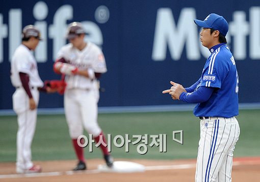 [아시아경제 김현민 기자] 12일 서울 목동구장에서 열린 프로야구 삼성 라이온즈와 넥센 히어로즈의 경기, 삼성 선발투수 배영수가 1회말 넥센 선두타자 서건창에게 3루타를 허용하고 아쉬워하고 있다.김현민 사진기자 kimhyun81@asiae.co.kr<ⓒ세계를 보는 창 경제를 보는 눈, 아시아경제(www.asiae.co.kr) 무단전재 배포금지>