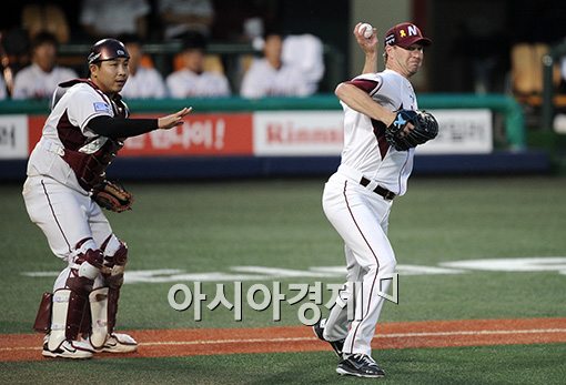 [아시아경제 김현민 기자] 12일 서울 목동구장에서 열린 프로야구 삼성 라이온즈와 넥센 히어로즈의 경기, 넥센 선발 밴헤켄이 4회초 2사에서 삼성 박석민의 타구를 잡아 1루로 송구하고 있다.김현민 사진기자 kimhyun81@asiae.co.kr<ⓒ세계를 보는 창 경제를 보는 눈, 아시아경제(www.asiae.co.kr) 무단전재 배포금지>