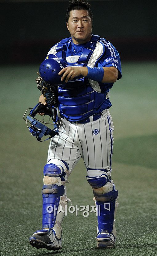 [아시아경제 김현민 기자] 12일 서울 목동구장에서 열린 프로야구 삼성 라이온즈와 넥센 히어로즈의 경기, 삼성 최형우가 포수로 나선 8회말을 마치고 더그아웃으로 향하고 있다.김현민 사진기자 kimhyun81@asiae.co.kr<ⓒ세계를 보는 창 경제를 보는 눈, 아시아경제(www.asiae.co.kr) 무단전재 배포금지>