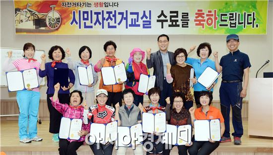 순천시는 12일 자전거문화센터에서 제1기 시민 자전거 교실 수료식을 갖고 기념촬영을 하고 있다.