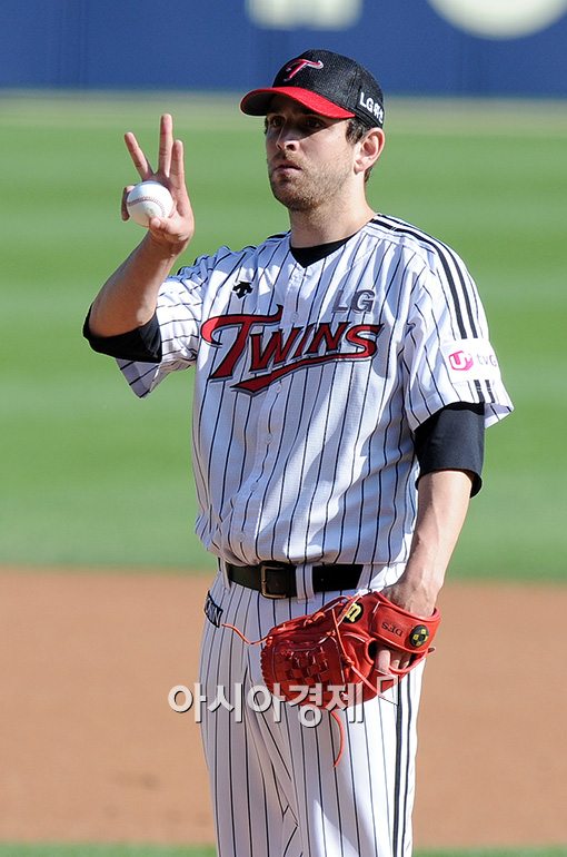 [아시아경제 김현민 기자] 14일 서울 송파구 잠실구장에서 열린 프로야구 SK 와이번스와 LG 트윈스의 경기, LG 선발투수 리오단이 경기 직전 연습투구를 하고 있다.김현민 사진기자 kimhyun81@asiae.co.kr<ⓒ세계를 보는 창 경제를 보는 눈, 아시아경제(www.asiae.co.kr) 무단전재 배포금지>