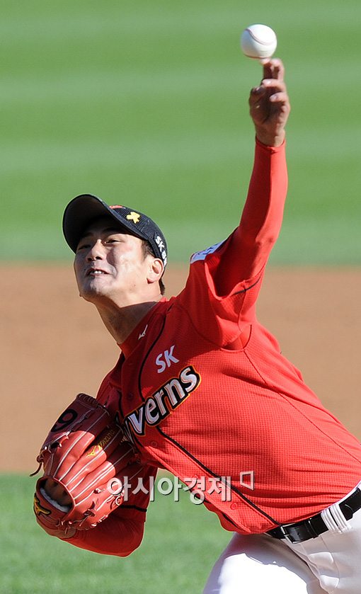 [아시아경제 김현민 기자] 14일 서울 송파구 잠실구장에서 열린 프로야구 SK 와이번스와 LG 트윈스의 경기, SK 선발투수 김광현이 역투하고 있다.김현민 사진기자 kimhyun81@asiae.co.kr<ⓒ세계를 보는 창 경제를 보는 눈, 아시아경제(www.asiae.co.kr) 무단전재 배포금지>