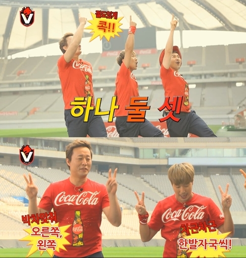 [아시아경제 온라인이슈팀] 무한도전 콕콕댄스 배워보세요 "월드컵 V, 찌르고 또 찌르자"무한도전 응원단이 손예진부터 정일우까지 화려한 라인업을 완성해 브라질 월드컵 공식 응원가 및 응원 댄스를 공개하면서 월드컵 프로젝트에 시동을 걸었다.14일 MBC '무한도전'에서는 신입 단원이 합류해 합숙 훈련을 갖는 월드컵 응원단 이야기가 공개됐다. 이날 방송에서는 무한도전 멤버들과 응원단원으로 새롭게 합류한 배우 손예진과 정일우, 개그맨 지상렬, 그룹 B1A4의 바로, 걸그룹 애프터스쿨의 리지 등 새로운 신입 단원들이 무한도전의 월드컵 응원 댄스를 연습하는 모습이 그려져 눈길을 끌었다.하하, 바로, 리지로 구성된 안무팀 '하바리'가 새롭게 공개된 무한도전 월드컵 응원가 '승리의 시간'의 가사에 맞게 쉽고 재밌는 댄스를 선보이는가 하면, 방송 말미에는 또 다른 응원가인 '빅토리 송'에 맞춰 콕콕댄스를 추는 응원단 멤버들의 모습이 공개돼 눈길을 끌었다.이날 무한도전을 통해 소개된 콕콕댄스는 승리를 나타내는 브이(V)자를 좌우로 찌르는 동작과 검지손가락을 하늘로 향해 콕콕 찌르는 동작 등을 통해 승리의 염원과 짜릿함을 담아낸 월드컵 응원 댄스다.특히 남녀노소 누구나 따라하기 쉽고 재밌는 동작이 특징으로 제 2의 꼭짓점 댄스로 점쳐지며 화제를 얻고 있다.콕콕댄스 소식을 접한 네티즌은 "콕콕댄스, 재밌다" "콕콕댄스, 한동안 유행할 듯" "콕콕댄스, 월드컵 응원 댄스"등의 반응을 보였다.온라인이슈팀 <ⓒ세계를 보는 창 경제를 보는 눈, 아시아경제(www.asiae.co.kr) 무단전재 배포금지>