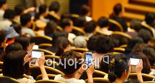 [아시아경제 백소아 기자] 15일 서울 강남구 코엑스에서 열린 '강남구청 인터넷 수능방송 대입지원전략 설명회'에서 학부모들이 휴대폰으로 6월 모의평가 내용을 찍고 있다.백소아 기자 sharp2046@asiae.co.kr<ⓒ세계를 보는 창 경제를 보는 눈, 아시아경제(www.asiae.co.kr) 무단전재 배포금지>