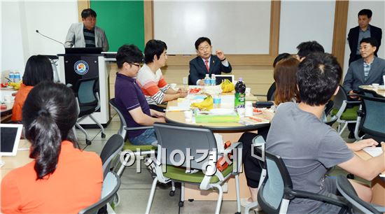 순천시는 지난 13일 평생학습관에서 20~30대 시청 새내기 공무원 및 지역 청년들과 함께한 ‘차세대 생각 모으기 토론회를 개최했다.<br /> <br /> 이번 토론회는 행정 경험이 적은 새내기 공무원 및 지역 청년들과 격의 없는 대화를 통한 시정참여 유도와 민선6기 시정 운영에 대한 소통을 위해 준비됐다.<br /> <br /> 토론회는 외부 전문가(모세환 강사) 진행으로 「시민 입장에서 바라본 시정에 대한 평가와 바램」, 「조직의 기능과 역할, 상.하직원의 현 실태와 개선 방안」, 「공직사회의 잘못 된 관행이나 습관, 개선할 사항」, 「내가 시장이라면 민선6기를 시정을 어떻게 이끌어 갈 것인가?」, 「기타 시정 전반에 대한 시책 제안 사항」 등 총5개 자유주제 토론 후 공통의견 모으기로 진행됐다.<br /> <br /> 그 외 별도 조직문화에 대한 설문 조사를 통해 의견을 모은 결과 6시 정시퇴근하자는 데 79%, 연가 10일 이상 의무 사용하자는데 66%가 찬성하는 것으로 나타났다.<br /> <br /> 시는 토론 시 제시된 다양한 의견은 오는 7월 1일 출범하는 민선 6기 시정에 참고할 계획이다.<br /> <br /> 조충훈 시장은 “역량 있는 새내기 직원들의 참신한 시각으로 바라본 시정에 대한 다양한 의견은 미래 순천을 위해 꼭 필요하다”며 “허심탄회한 토론을 통해 다양한 의견을 제시하기 바란다”고 격려했다.<br />
