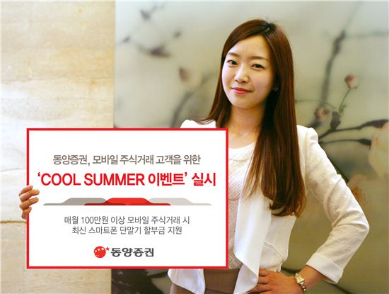 동양증권이 18일부터 오는 7월31일까지 신규·기존고객 선착순 1000명에게 스마트폰 단말기 할부금을 지원하는 '쿨써머(COOL SUMMER) 이벤트'를 진행한다.