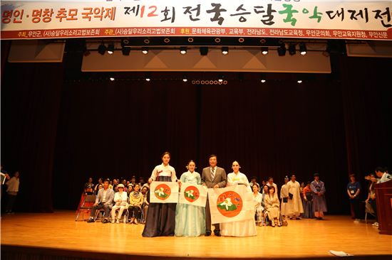[무안전국승달국악대제전에서 입상한 수상자들이 시상식 뒤 김철주 무안군수와 기념촬영을 하고 있다.]<br />