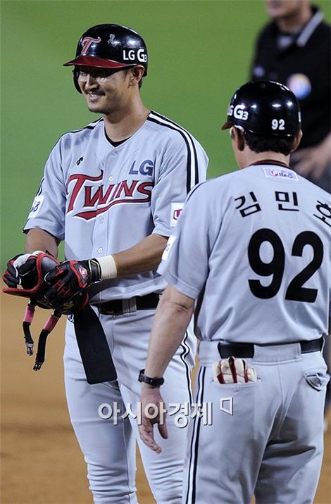 [아시아경제 김현민 기자]18일 오후 서울 잠실구자에서 열린 2014 프로야구 LG 트윈스와 두산 베어스의 경기, 7회초 무사 1,2루에서 LG 박용택이 1타점 적시타를 치고 미소짓고 있다.김현민 사진기자 kimhyun81@asiae.co.kr<ⓒ세계를 보는 창 경제를 보는 눈, 아시아경제(www.asiae.co.kr) 무단전재 배포금지>