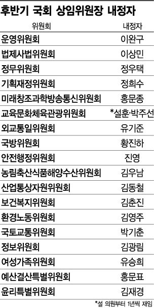 19대 국회 후반기 상임위원장 내정자 명단.