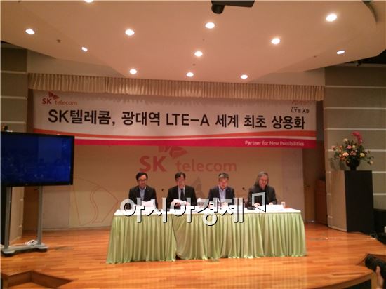 [아시아경제 권용민 기자] SK텔레콤이 세계 최초로 '3배 빠른' 광대역 LTE-A를 국내에서 상용화했다. 이론적으로는 영화 1편을 28초에 내려받을 수 있는 225Mbps의 속도를 내지만 사용자 수와 트래픽을 등을 감안하면 소비자들은 현장에서 70~80Mbps 수준의 서비스를 이용할 수 있을 것으로 보인다.SK텔레콤은 19일 서울 중구 을지로 SKT타워에서 간담회를 갖고 LTE보다 3배 빠른 '광대역 LTE-A'서비스 상용화를 선언했다. 동시에 세계 첫 광대역 LTE-A 지원 단말인 삼성전자의 '갤럭시S5 광대역 LTE-A'도 출시했다. 광대역 LTE-A는 지금까지 사용된 '광대역LTE'와 'LTE-A' 기술을 혼합한 기술이다. 고속도로로 치면 기존 광대역 LTE가 도로를 두 배로 넓히는 것이고 LTE-A는 서로 떨어진 도로 두 개를 사용했다면, 광대역 LTE-A는 두 배로 넓힌 도로를 함께 사용한다.이종봉 SK텔레콤 네트워크 부문장은 "처음 LTE가 나왔을 때 고객들이 체감한 속도는 평균 30~40Mbps였고, 2배 빠른 광대역 LTE나 LTE-A가 나왔을 때 평균 50~60Mbps가 나왔다"면서 "이번 광대역 LTE-A를 통해 고객들은 70~80Mbps 속도를 경험할 수 있을 것"이라고 설명했다.이날 SK텔레콤은 광대역 LTE-A 상용화 선언과 함께 ▲데이터를 많이 사용하는 소비자들을 위한 특화 요금제 ▲빠른 속도를 즐길 수 있는 특화 서비스 ▲갤럭시S5 광대역 LTE-A 출시 등을 발표했다.SK텔레콤은 이달 말 월 9000원에 서울ㆍ수도권 지하철 차량과 역사 내에서 무제한으로(하루 2GB 이상 이용시 400Kbps 속도 제한) 데이터를 이용할 수 있는 '지하철 프리' 요금제를 선보이고 클라우드 게임 전용 요금제인 '클라우드 게임팩(가칭)'도 곧 출시한다는 방침이다.또 최대 4명이 동시에 다각도에서 촬영한 고화질 동영상을 클라우드 서버에서 하나의 영상으로 자동 편집, 스마트폰에서 공유할 수 있는 소셜 멀티미디어 서비스 '앵글스'를 내놨다. 오는 24일에는 클라우드 스트리밍 게임 플랫폼 '클라우드 게임'도 선보인다. 클라우드 게임은 클라우드 서버에서 설치ㆍ실행되고 사용자는 화면만 스마트폰을 통해 실시간 전송 받아 즐기는 방식이다.세계 첫 광대역 LTE-A 스마트폰인 '갤럭시S5 광대역 LTE-A'는 이날부터 전국 3000여 대리점과 온라인 판매처 T월드 다이렉트(//www.tworlddirect.com)를 통해 판매된다. 이 모델은 초고해상도 QHD 디스플레이가 탑재됐다. 블랙ㆍ화이트 색상으로 제공되며 블루ㆍ골드ㆍ핑크에 이어 SK텔레콤 전용으로 레드 컬러가 출시된다.다음은 최진성 ICT기술원장, 윤원영 네트워크부문장, 이종봉 네트워크부문장, 위의석 상품기획부문장과의 일문일답이다.-이전 'LTE-A'나 '광대역LTE'도 2배 빠르다고 했지만 결국 처음 LTE속도로 떨어졌다. 3배 빠르다고는 하지만 데이터 사용량 때문에 결국에는 속도가 떨어지지 않지는 않겠나. 광대역 LTE-A가 대중에 보급이되면 실제 나오는 속도는 어느정도로 예측하는가.▲기본 LTE의 3배라고 말했는데, 말씀하신대로 보통 30~40Mbps 속도가 나온다. 작년에 광대역 LTE LTE-A가 됐을때 50~60사이 나왔다. 작년에 정부에서 속도 측정을 했을 때 SKT 속도가 56.2Mbps였다. 그렇다면 지금 내놓은 광대역 LTE-A는 현장에서 70~80정도의 속도가 나올 것으로 보인다.-경쟁사의 경우 '4배 빠른' LTE 얘기도 한다. 주파수 폭이라던지 업로드와 관련돼 속도 강점 등을 강조한다. SKT 가지고 잇는데 3CA 대응 전략과 업로드에 관련된 속도 문제가 경쟁력이 될 수 있을지 듣고싶다.▲업로드는 표준화가 진행중이다. 오는 9월에 표준화가 완료된다. 통상적으로 표준화 완료되면 상용화 하는데 1년에서 1년반정도 걸린다. 빠르면 2015년 상반기 중에는 해당 기술이 준비가 될 예정이다. 누가 더 빨리한다고는 쉽게 얘기할 수 있지만 결국은 고객들이 실제로 사용할 수 있느냐가 핵심일 것이다.대부분의 트래픽이 다운로드에 몰려있다. 이런 현상은 점점 더 심화되고 있다. 통계 수치를 보면 과거에는 다운로드와 업로드가 60대 40 비율이었다면 지금은 70대 30 수준이다. 특히 미디어 트래픽이 확장되면서 시간때에 따라 80대 20까지도 간다. 결국 다운로드 속도가 품질의 경쟁력을 좌우한다는 것이다. 그렇다고 업로드가 중요하지 않다는 것은 아니지만 다운로드 품질을 유지하는 것이 고객을 만족시키기 위해서는 가장 중요하다. 앞으로 다운로드 품질을 지속적으로 강화함과 동시에 업로드 속도도 앞설 것이라고 자신한다. 금년 말이나 내년 초까지는 어느 사업자보다 먼저 300Mbps 속도를 체감할 수 있게끔 할 계획이다.-연말이면 300Mbps 나올 것이라고 했는데, 그렇게 되면 오늘 나온 삼성 스마트폰 구입한 고객은 그 서비스를 사용할 수 없는건가.▲단말기 표준화 카테고리가 진화되고 있다. 갤럭시S5도 지난 3월 출시된지 2개월만에 또 광대역LTE-A가 나오면서 서비스를 이용하려면 새로운 단말기가 필요하게 됐다. 연말이나 내년 초 3CA가 되면 결국 또 새로운 단말기를 구매를 해야한다. 어떻게 보면 기술이 너무 빨라서 어쩔 수 없이 발생하는 문제다. 국제적으로 ICT 주도권싸움이 심한데, 이같은 테크 리더십을 장악하기 위해서는 어쩔 수 없는 부분이다. 오늘도 세계 최초 광대역 LTE-A 상용화한 것은 이런 척박한 환경에서 국내 ICT 산