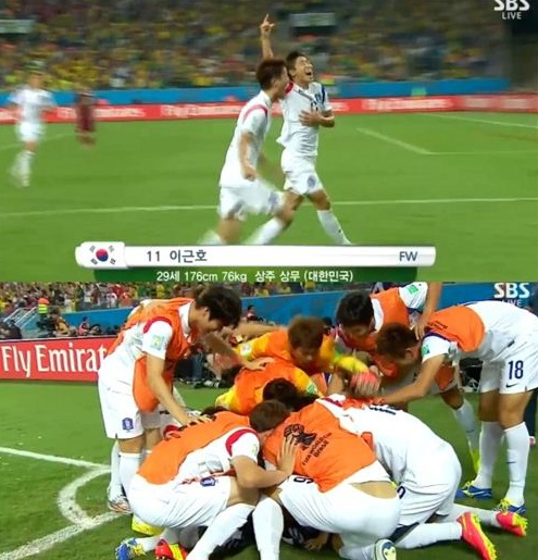 ▲한국과 러시아의 경기에서 선제골을 터뜨린 이근호(사진:SBS 방송 캡처)