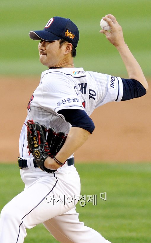 [아시아경제 김현민 기자]19일 오후 서울 잠실구장에서 열린 프로야구 LG 트윈스와 두산 베어스의 경기, 두산 선발투수 이재우가 역투하고 있다.김현민 사진기자 kimhyun81@asiae.co.kr<ⓒ세계를 보는 창 경제를 보는 눈, 아시아경제(www.asiae.co.kr) 무단전재 배포금지>