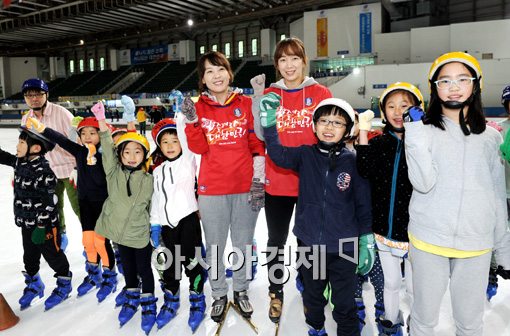 [아시아경제 김현민 기자]동계올림픽 쇼트트랙 금메달리스트 조해리와 최민경이 21일 서울 공릉동 태릉국제스케이트장에서 '재능기부 및 월드컵 16강 진출 기원'행사에 참가해 아이들과 함께 축구대표팀의 선전을 기원하는 파이팅을 외치고 있다.김현민 기자 kimhyun81@asiae.co.kr<ⓒ세계를 보는 창 경제를 보는 눈, 아시아경제(www.asiae.co.kr) 무단전재 배포금지>
