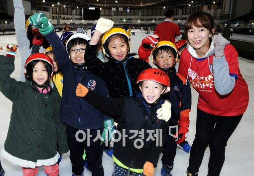 [아시아경제 김현민 기자]동계올림픽 쇼트트랙 금메달리스트 조해리와 최민경이 21일 서울 공릉동 태릉국제스케이트장에서 '재능기부 및 월드컵 16강 진출 기원'행사에 참가해 아이들과 함께 축구대표팀의 선전을 기원하는 파이팅을 외치고 있다.김현민 기자 kimhyun81@asiae.co.kr<ⓒ세계를 보는 창 경제를 보는 눈, 아시아경제(www.asiae.co.kr) 무단전재 배포금지>