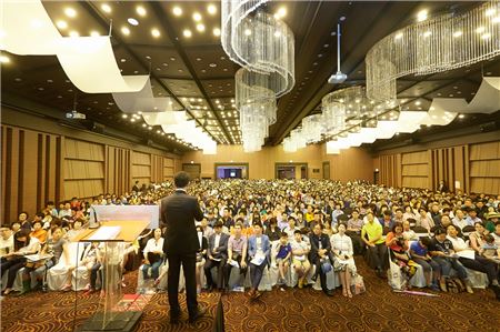 21일 진행된 창원 더샵 센트럴파크의 고객 초청 사업설명회에 참석한 조합원, 관심고객 등 3500여명이 포스코건설의 설명회를 듣고 있다.