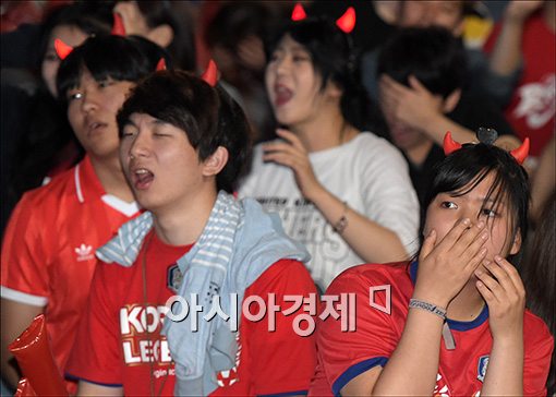 [아시아경제 윤동주 기자] 2014 브라질 월드컵 H조 조별리그 대한민국과 알제리의 경기가 2:4로 한국이 패하자 23일 서울 종로구 광화문 광장에서 거리응원을 하던 시민들이 안타까워하고 있다.윤동주 기자 doso7@asiae.co.kr<ⓒ세계를 보는 창 경제를 보는 눈, 아시아경제(www.asiae.co.kr) 무단전재 배포금지>