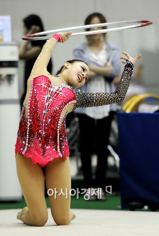 [아시아경제 김현민 기자]‘리듬체조 요정’ 손연재가 23일 오전 서울 태릉선수촌 리듬체조장에서 열린 '2014 리듬체조 국가대표 및 국제대회 파견대표 선발전'에서 후프 연기를 펼치고 있다.김현민 기자 kimhyun81@asiae.co.kr<ⓒ세계를 보는 창 경제를 보는 눈, 아시아경제(www.asiae.co.kr) 무단전재 배포금지>