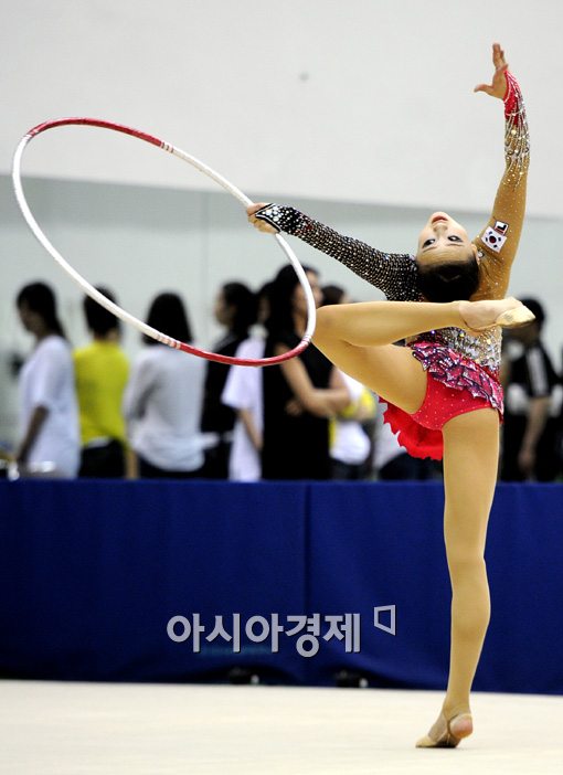 [아시아경제 김현민 기자]‘리듬체조 요정’ 손연재가 23일 오전 서울 태릉선수촌 리듬체조장에서 열린 '2014 리듬체조 국가대표 및 국제대회 파견대표 선발전'에서 후프 연기를 펼치고 있다.김현민 기자 kimhyun81@asiae.co.kr<ⓒ세계를 보는 창 경제를 보는 눈, 아시아경제(www.asiae.co.kr) 무단전재 배포금지>