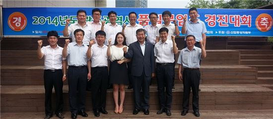 [한국농어촌공사 전남본부 및 무안신안지사 친환경 연합분임조가 '광주광역시 품질분임조 경진대회'에서 우수상을 획득한 뒤 기념촬영을 하고 있다.]