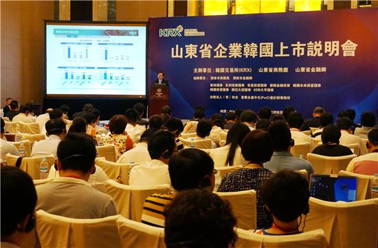 최경수 한국거래소 이사장이 중국 산동성 성도 제남시에서 열린 한국증시 상장설명회에 앞서 개회사를 하고 있다.