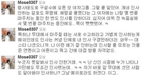 [아시아경제 온라인이슈팀] '티아라 사건'때 모세, 무슨 말 했길래…5년만에 컴백 앞두고 주목가수 모세의 컴백소식이 전해진 가운데 과거 그와 관련된 '티아라 사건'이 또다시 주목받고 있다.5년 만에 컴백 소식을 전하는 가수 모세가 30일 신곡 '마주치지 말자'를 발표한다. 앞서 모세는 최근 종영한 드라마 '골든크로스' OST '아일랜드(island)' 와 MBC 드라마 '왔다! 장보리'의 OST '십년이 지나도'를 발표하며 컴백을 예고했다.한편 모세의 컴백이 알려지자 온라인상에선 과거 '티아라 사건'에 대한 관심이 높아졌다.모세는 지난 2011년 10월17일 트위터를 통해 "행사태도로 구설수에 오른 모 여자그룹. 그럴 줄 알았어. 걔네 인사 안하는 걸로도 유명해. 해명글 올렸다는 그 여자애는 나랑 몇 번을 마주치는 동안 한 번도 인사를 안하더라. 심지어 데뷔 전 녹음실에서 몇 번을 마주치는 동안에도…목이 빳빳했어"라는 글을 게재했다.당시 논란이 불거지자 티아라 역시 해명에 나섰다. 이에 모세는 트위터에 "어쨌든 난 할 말 한 거고 그러려고 한 건 아니지만 그 친구들의 사과의 뜻도 잘 전달 받았고 생각지 못한 쪽으로 상황이 좀 흘러서 나도 그 친구들에게 미안하다"고 전했지만 당시 논란은 계속됐다.온라인이슈팀 <ⓒ세계를 보는 창 경제를 보는 눈, 아시아경제(www.asiae.co.kr) 무단전재 배포금지>