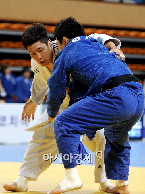 [경산=아시아경제 김현민 기자] 남자 유도 이승수(하이원)이 세계유도선수권대회 및 인천아시안게임에 나설 국가대표 최종평가전을 겸한 제53회 KBS 전국체급별유도선수권대회 -81kg급 승자전 4강에서 왕기춘(양주시청)과 대결을 펼치고 있다. 결과는 이승수 절반승.김현민 기자 kimhyun81@asiae.co.kr<ⓒ세계를 보는 창 경제를 보는 눈, 아시아경제(www.asiae.co.kr) 무단전재 배포금지>