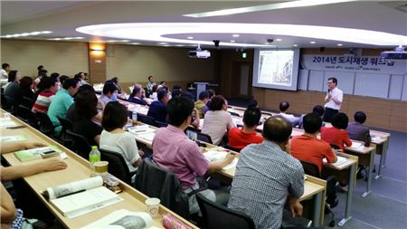 25일부터 사흘간 대전 토지주택연구원에서 진행되는 '도시재생 워크숍'에서 참석자들이 강연을 듣고 있다.