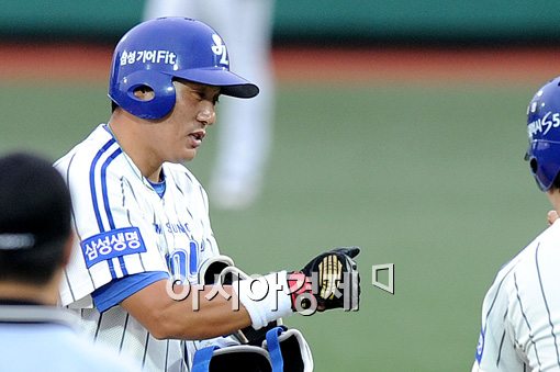 [대구=아시아경제 김현민 기자] 25일 대구 시민야구장에서 열린 프로야구 넥센 히어로즈와 삼성 라이온즈의 경기, 1회말 2사 1,2루에서 삼성 이승엽이 선취 1타점 2루타를 치고 김평호 코치와 하이파이브하고 있다.김현민 기자 kimhyun81@asiae.co.kr<ⓒ세계를 보는 창 경제를 보는 눈, 아시아경제(www.asiae.co.kr) 무단전재 배포금지>