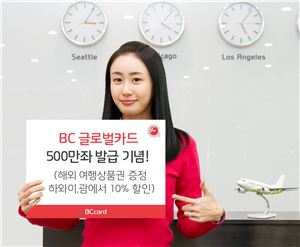 [아시아경제 이현주 기자] BC카드는 BC글로벌카드가 출시된 지 3년 3개월 만에 500만좌 발급을 달성했다고 26일 밝혔다. BC글로벌카드는 2011년 4월 '국제카드 브랜드 없이 해외 사용이 가능한 카드'를 표방하며 국내 최초 발급된 카드다. BC카드는 "지난 수년간의 경제 불황 속에서도 연평균 150만좌 이상 발급의 성공적 성과를 이룬 비결은 차별화된 경제성, 다양한 발급처, 고객 지향적 마케팅 등을 들 수 있다"고 설명했다.BC글로벌카드는 기존 국제카드 브랜드 (비자·마스타카드) 사용자들이 부담했던 1%의 국제카드 수수료가 없고 연회비 또한 국내 전용카드 수준이다. BC글로벌카드는 우리카드, 스탠다드차타드은행, NH농협카드, IBK 기업은행, 대구은행, 부산은행, 경남은행, 제주은행, 수협 등 9개 금융사에서 발급 중이다. 상품은 265개에 달한다. BC카드는 500만좌 달성 기념으로 'High Five 이벤트'를 준비했다. BC글로벌카드로 해외에서 100달러(미화) 이상 결제 시 총 505명 추첨을 통해 100만원 상당 여행상품권 증정 및 1만원 캐시백을 제공하고 7월 중 '5'가 들어가는 날(5일, 15일, 25일)에 5개 해외 온라인 쇼핑몰에서 BC 글로벌카드 결제 시 10% 캐시백(카드당 최대 5000원)을 제공한다. 하와이·괌·사이판 지역에서 BC글로벌카드 결제 시 10% 캐시백(~9월30일까지, 카드당 지역별 월 최대 3만원), BC글로벌카드로 하와이안항공의 항공권 구입 후 하와이에서 이용 시 10% 추가 캐시백(~9월 30일까지, 카드당 월 최대 5만원) 등 혜택을 제공한다.자세한 내용은 BC카드 홈페이지(www.bccard.com)를 참조하면 된다. 원효성 BC카드 영업부문장 부사장은 "BC 글로벌카드가 500만좌 발급에 이르기까지 성원해주신 모든 고객에게 진심으로 감사드린다"며 "이를 계기로 앞으로도 고객들에게 더 큰 만족을 드리기 위한 혜택을 제공하는 글로벌 브랜드가 되도록 최선을 다하겠다"고 말했다.이현주 기자 ecolhj@asiae.co.kr<ⓒ세계를 보는 창 경제를 보는 눈, 아시아경제(www.asiae.co.kr) 무단전재 배포금지>