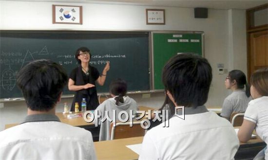 호남대학교 상담심리학과(학과장 신준영)는 25일 서구 풍암신흥로 풍암고등학교(교장 주방식)에서 진로특강을 실시했다. <br /> <br /> 이날 진로특강에서 상담심리학과 김미례 교수는 풍암고 상담심리동아리 학생들을 대상으로 ‘상담심리학의 최근 동향’을 주제로 강의를 실시했다. <br /> <br /> 또 2015학년도 호남대학교 입시 전형에 대한 설명과 상담심리학과 입학을 희망하는 학생들의 궁금한 사항에 대한 질의응답 시간을 가졌다.<br /> <br />