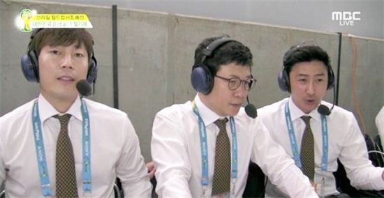 ▲왼쪽부터 송종국 해설위원, 김성주 캐스터, 안정환 해설위원. (사진: MBC 중계화면 캡처)