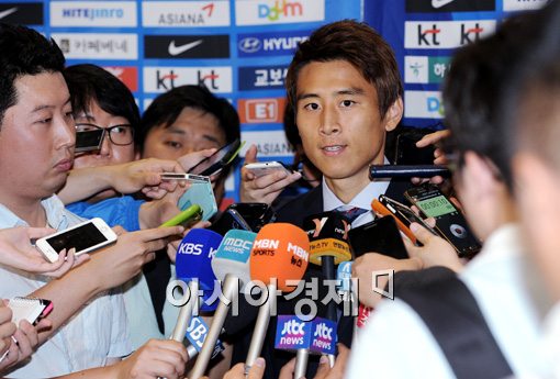 [영종도=아시아경제 김현민 기자] 2014 브라질 월드컵에서 조별리그 1무 2패로 16강 진출이 좌절된 축구 국가대표팀이 30일 인천국제공항을 통해 귀국했다. 대표팀 주장 구자철이 인터뷰를 하고 있다.김현민 기자 kimhyun81@asiae.co.kr<ⓒ세계를 보는 창 경제를 보는 눈, 아시아경제(www.asiae.co.kr) 무단전재 배포금지>