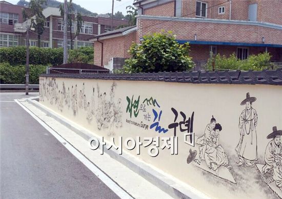 구례군은 도로의 벽면에 우리 민족의 전통적인 생활상을 그린 풍속화를 그려 넣어 시각적인 효과를 냈다. <br />