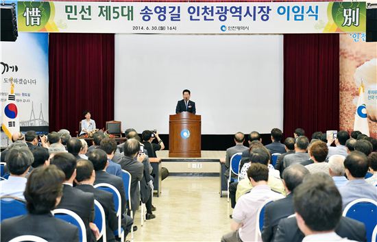 송영길 인천시장이 30일 이임식을 갖고 민선5기 인천시장 임기를 마무리했다.